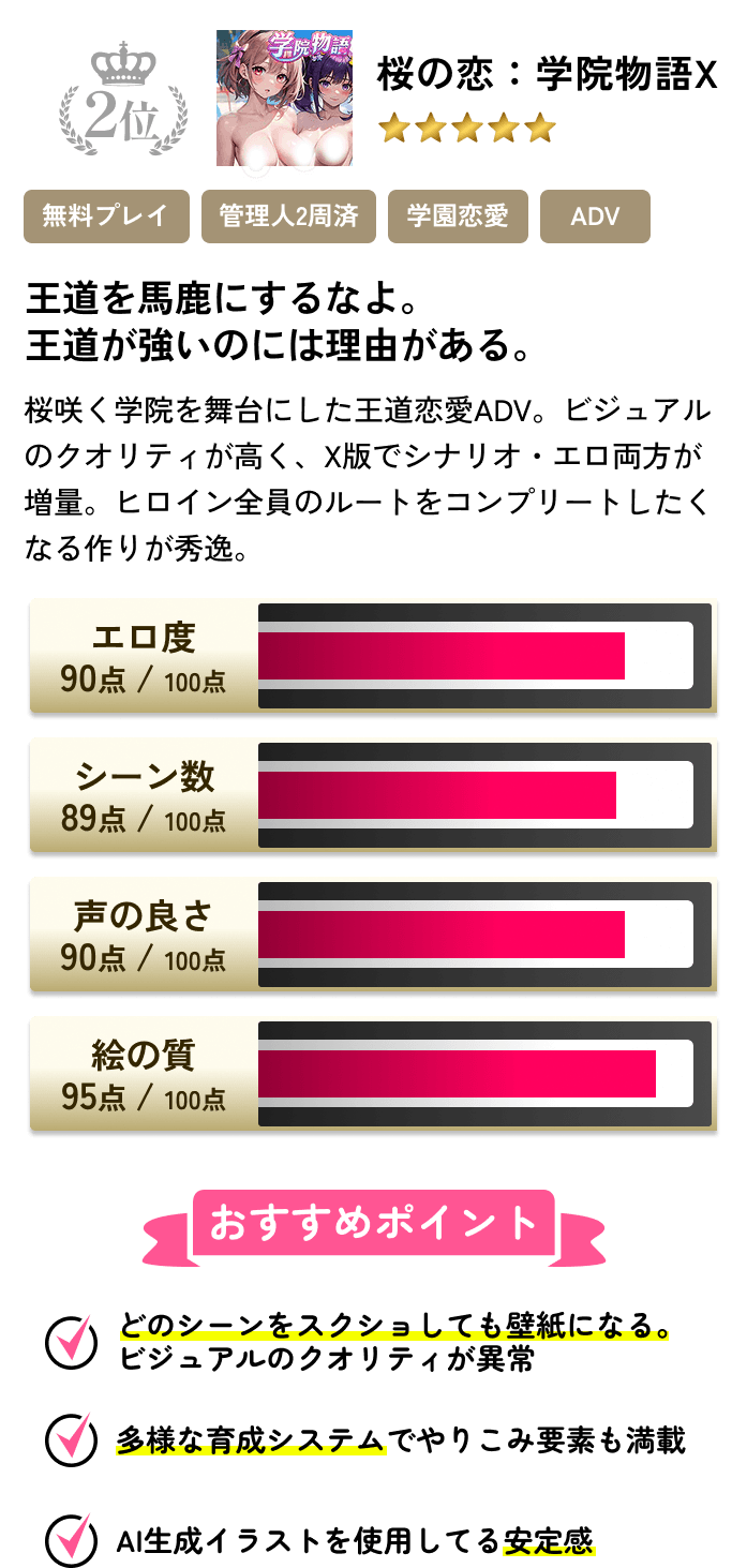 【最新2026年】抜ける!!エロゲ10選!エロゲーで一番大事なのは結局エロの質。このランキングは「どれだけ抜けるか」を軸に評価しています。シーン数・絵の質・ボイス・シチュエーションの濃さを正直にレビューしました。全作無料プレイ可能なので、まず1位から試してください。
